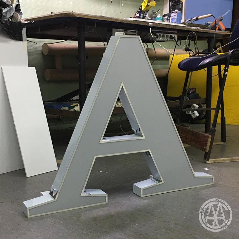 Можно заказать вывеску (объёмные буквы) с различным освещением.